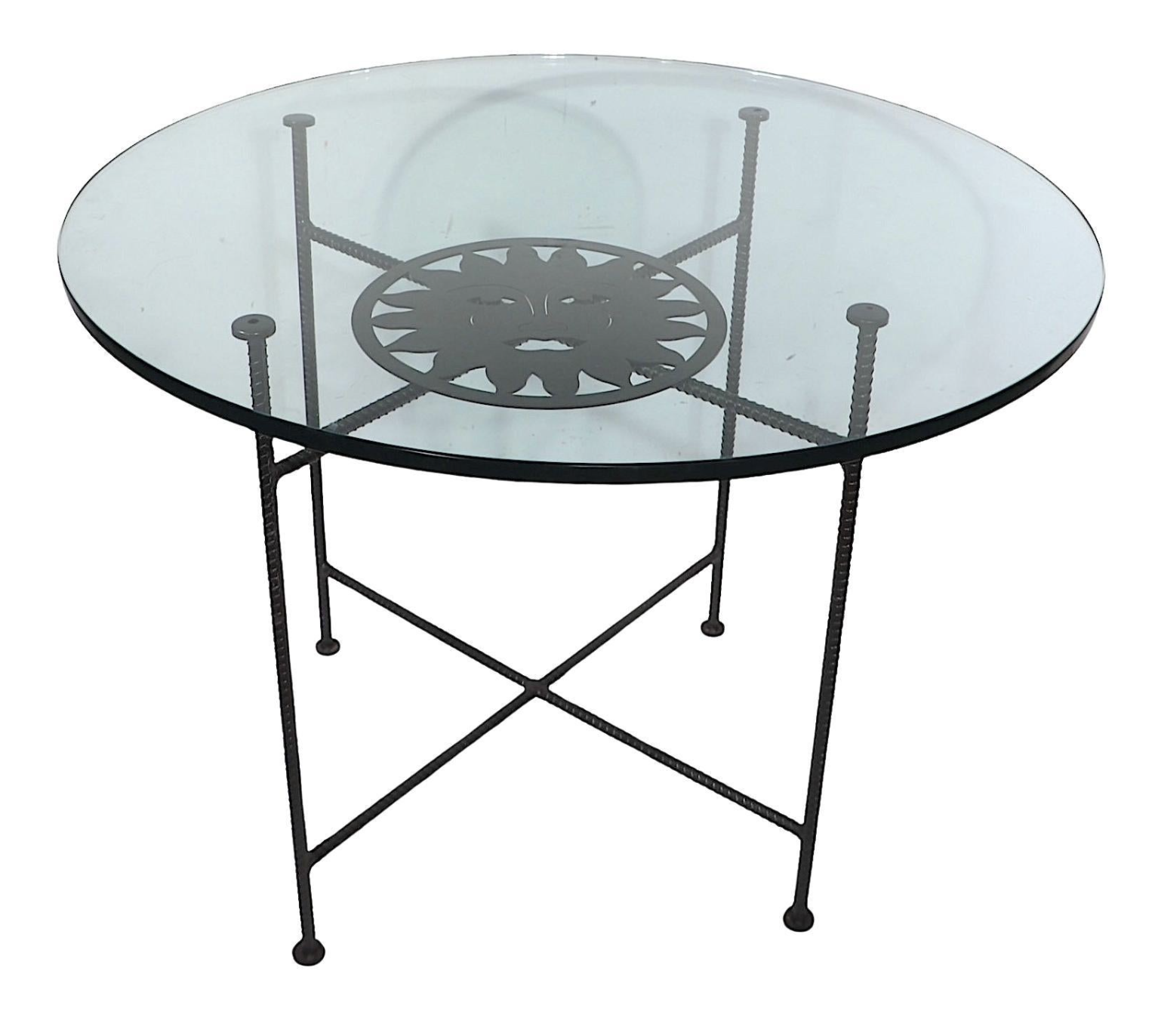 This vintage 1990’s wrought iron base and glass top table keeps things light, but it’s the sun cut-out that steals the show. Probably late 20th century, possibly made for a boutique patio, definitely giving Italian astro-glam. Perfect for anyone who likes a little solar energy with their Aperol.